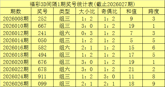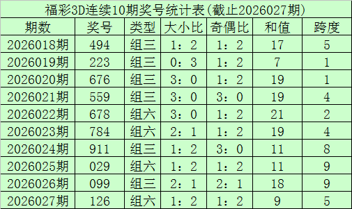 开奖回顾:福利彩票3D第26027期奖号开出126。奖号类型为组六,奇偶形态为奇偶偶,大小形态为小小大。