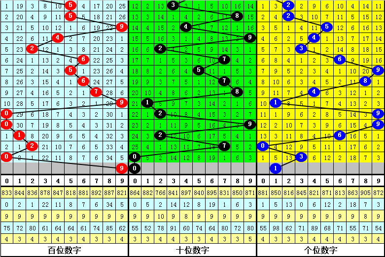 百位:上期奖号为:0,该位大小 号走势趋于平衡,上期下降2点,本期预计该位上升,参考号码9。