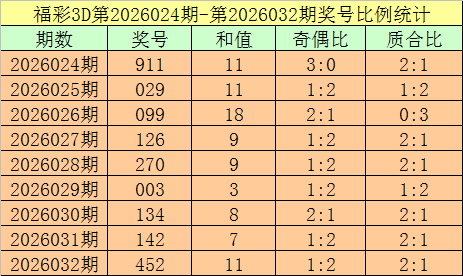 开奖回顾:福彩3D第2026032期:奖号为452,奖号质合比为2:1,大小比为1:2,跨度为3,类型为组六。