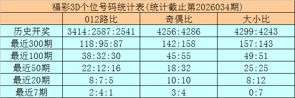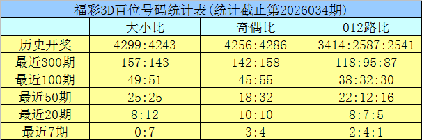 开奖回顾:福彩3D第2026034期奖号为:052。奖号形态开出组六,奇偶比开出1:2,012路比为1:0:2,大小比为1:2。