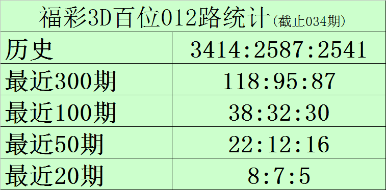 百位推荐:百位最近20期号码012路比为8:7:5,目前0路号码遗漏0期,1路号码遗漏1期,2路号码遗漏6期,另外0-9号码遗漏期数分别为: