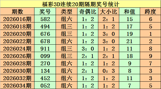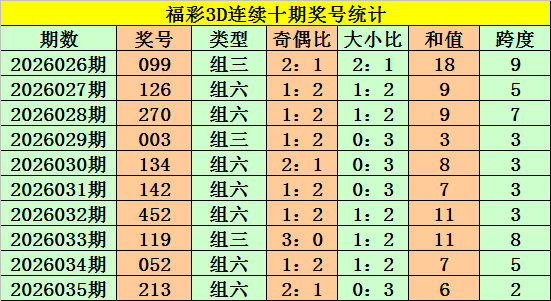 上期回顾:福彩3D第2026035期奖号:213。组六、小小小、偶奇奇。