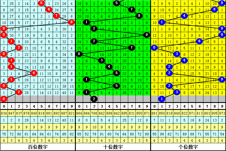 跨度:近5期跨度分布在2-8之间,振幅为7点,分布非常分散,上期跨度为2,下降3点,本期注意跨度重复出现。