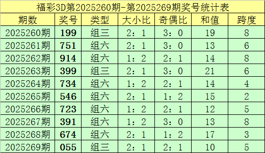 上期回顾:福彩3D第2025269期奖号:055。