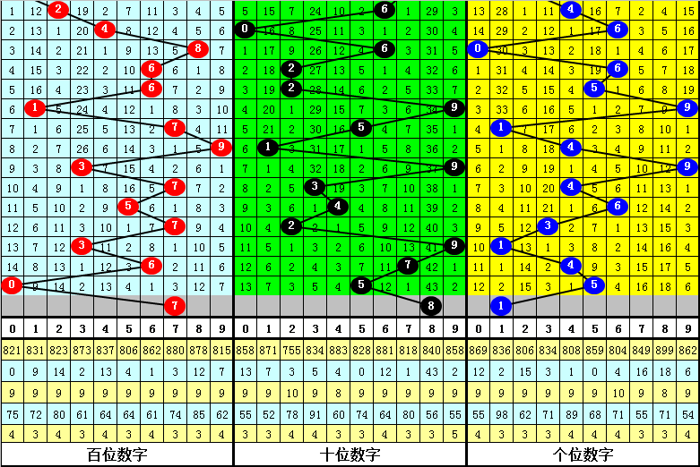 百位分析:上期百位开出奖号:0,最近9期该位奖号大小比为6:3,其中大号7出现3次,5、6、9出现1次,8出现0次,小 号3出现2次,0出现1次,1、2、4出现0次,本期百位参考大号,胆码关注7。