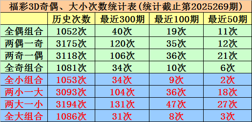 奇偶、大小分析:在最近50期开奖中,全偶组合开出11次,当前遗漏11期、两偶一奇组合开出12次,当前遗漏1期、两奇一偶组合开出21次,当前遗漏0期、全奇组合开出6次,当前遗漏2期,本期注意两奇一偶组合;两大一小组合出现27期,当前轮空0期、全大组合出现3期,当前轮空18期、全小组合出现2期,当前轮空37期、两小一大组合出现18期,当前轮空2期,本期看好开出两大一小组合。