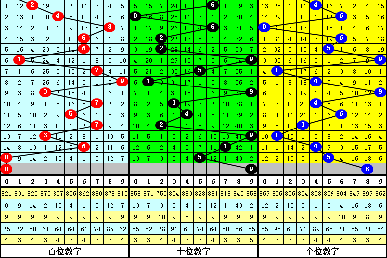 百位上期出现:温号0,该位连续十期以温号出现较多,以热号、冷号出现较少,目前百位热号有5个:0、3、5、6、7,本期看好开出热号再次出现,参考号码0。