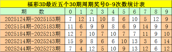 大小分析:在上一个30期周期内(第2025214期-第2025243期),奖号大小比为46:44,大小 号码开出比例基本持平;在但前30期周期内(第2025244期-第2025273期),3D开奖大小比为52:38,大号走势相对活跃。大号最近1期明显较冷,本期注意回补,预计开出2个大号。