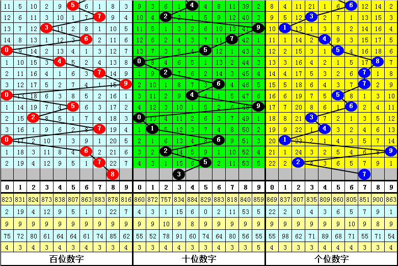 其中,号码0出现18次,1出现8次,2出现15次,3出现20次,4出现14次,5出现9次,6出现15次,7出现17次,8出现10次,9出现9次,奇偶比为63:72,奇数走冷,本期防止回补,奇偶比参考2:1;大小比为:60:75,大号出现频次较低,本期注意大号回补。
