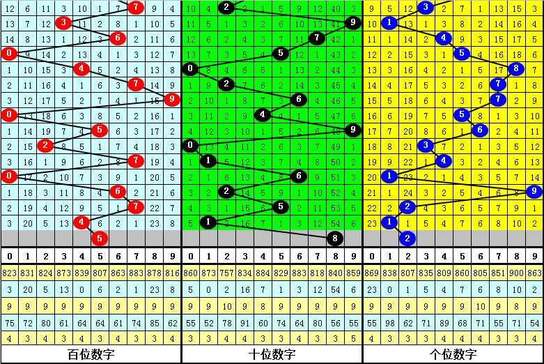 跨度分析:跨度最近10期012路比为5:2:3,0路跨度相对较热,近3期跨度分别遗漏23期、5期和4期,本期看好热码跨度出现,参考跨度6。