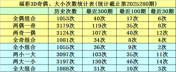 奇偶分析:在最近10期开奖中,全偶组合开出0期,两偶一奇组合开出4期,两奇一偶组合开出6期,全奇组合开出0期。