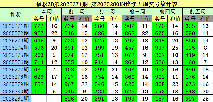 老梁福彩3D第2025281期综合推荐: