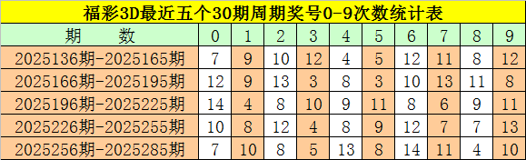 大小分析:在上一个30期周期内(第2025226期-第2025255期),奖号大小比为48:42,小 号走势较为低迷;在但前30期周期内(第2025256期-第2025285期),3D开奖大小比为47:43,小 号出现次数相对较低。最近2期小 号走势非常明显,本期看好小 号再次热出,预计出现2个小 号。