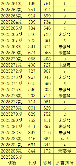 一、上期回顾:福彩3D第2025285期开出奖号172。