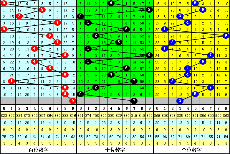 百位分析:上期出现号码8为:大号、合数,在连续9期开奖中,百位分别为:大号、质数:7;小 号、合数:4;大号、合数:8;小 号、合数:4;大号、合数:6;大号、合数:8;小 号、质数:1;大号、合数:8;大号、合数:8,其中大号表现频繁,合数开出频繁,百位本期预计开出大号、合数。