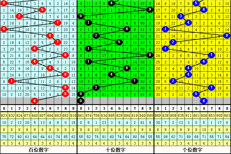百位:2025283期-2025287期出号:68188,振幅为7点,分布比较分散,本期看好百位走小,关注4。