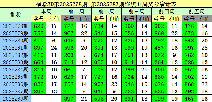 老梁福彩3D第2025288期综合推荐: