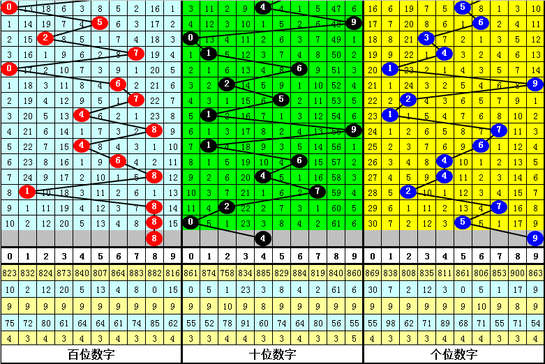 百位上期出现:热号8,该位连续十期以热号出现较多,以温号、冷号出现较少,目前百位热号有4个:1、4、6、8,本期看好开出热号再次出现,参考号码8。