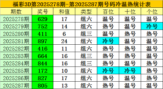 上期回顾:福彩3D第2025287期开奖奖号为:805,奖号类型为:组六,奖号冷温热态为:热号+温号+温号。