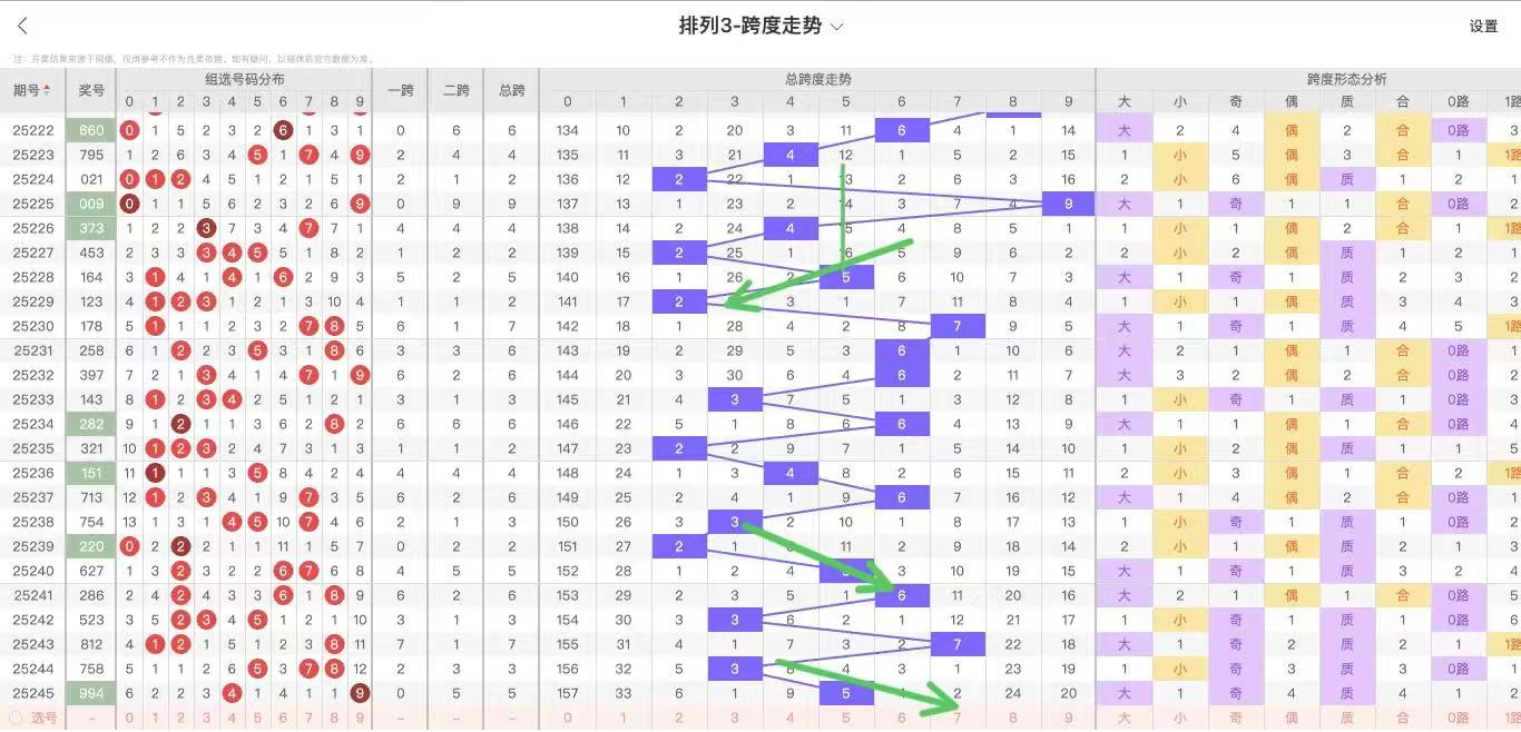 百期内跨度4开出14期,下期数据:2 5 9 2 2 7 6 5 9 9 7 8 4近期规律下期:大:奇:质