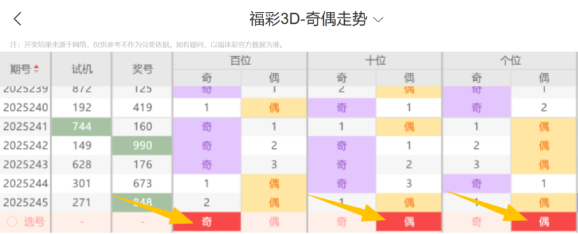 百位:奇偶形态为奇(13579),大小形态为小(01234)。
