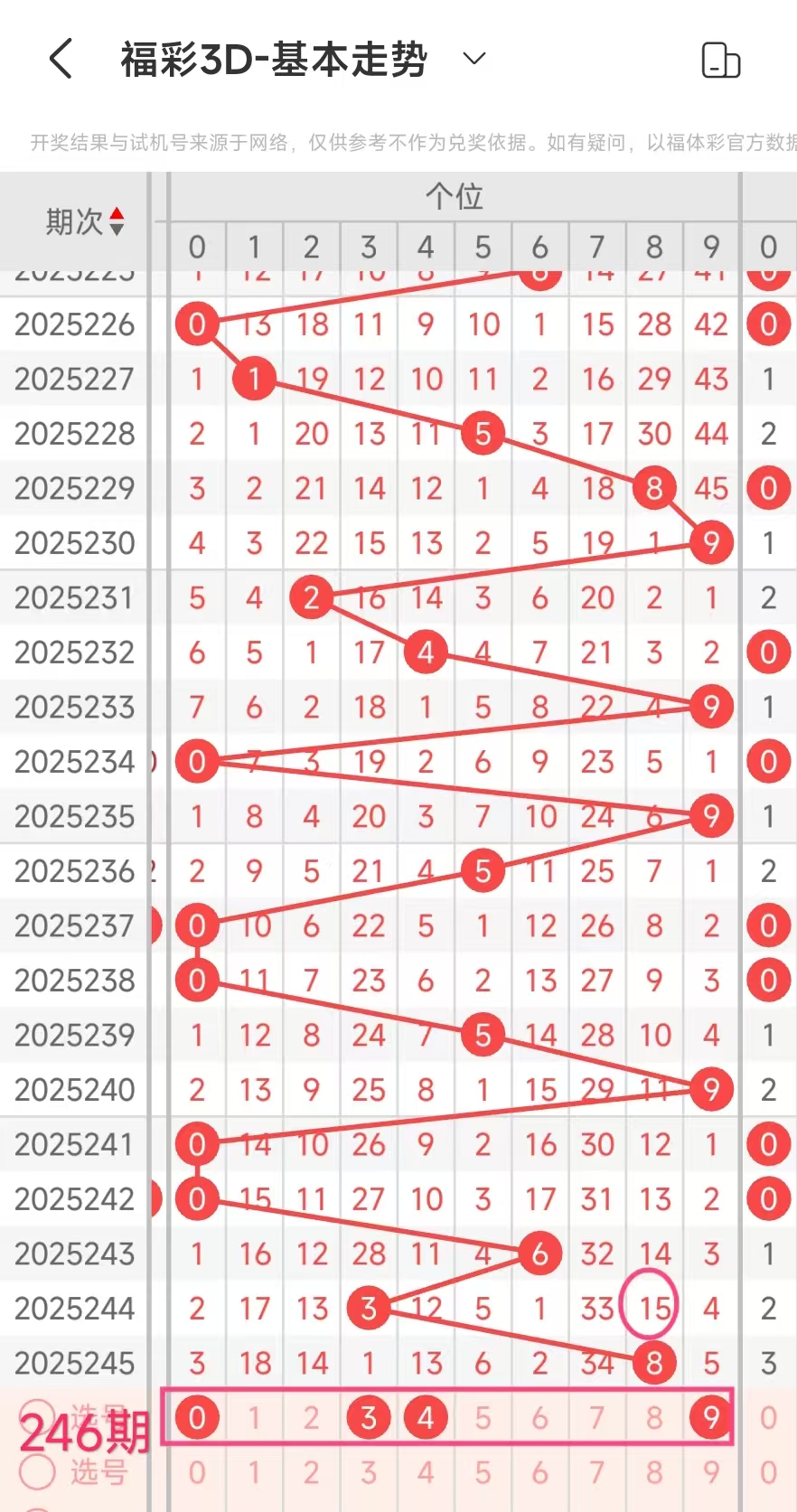 这23期跨度345趋势好,这期可以考虑345跨度。