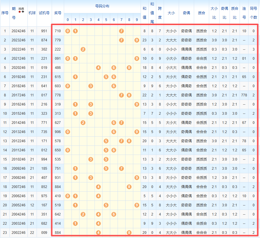 1、统计往年同期开奖号码