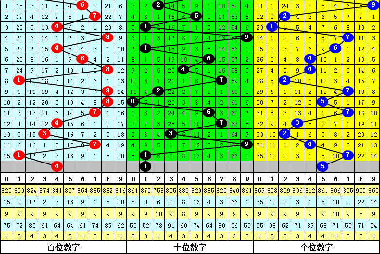 百位:上期奖号为:1,该位大 小 走势趋于平衡,上期下降6点,本期预计该位上升,参考号码4。