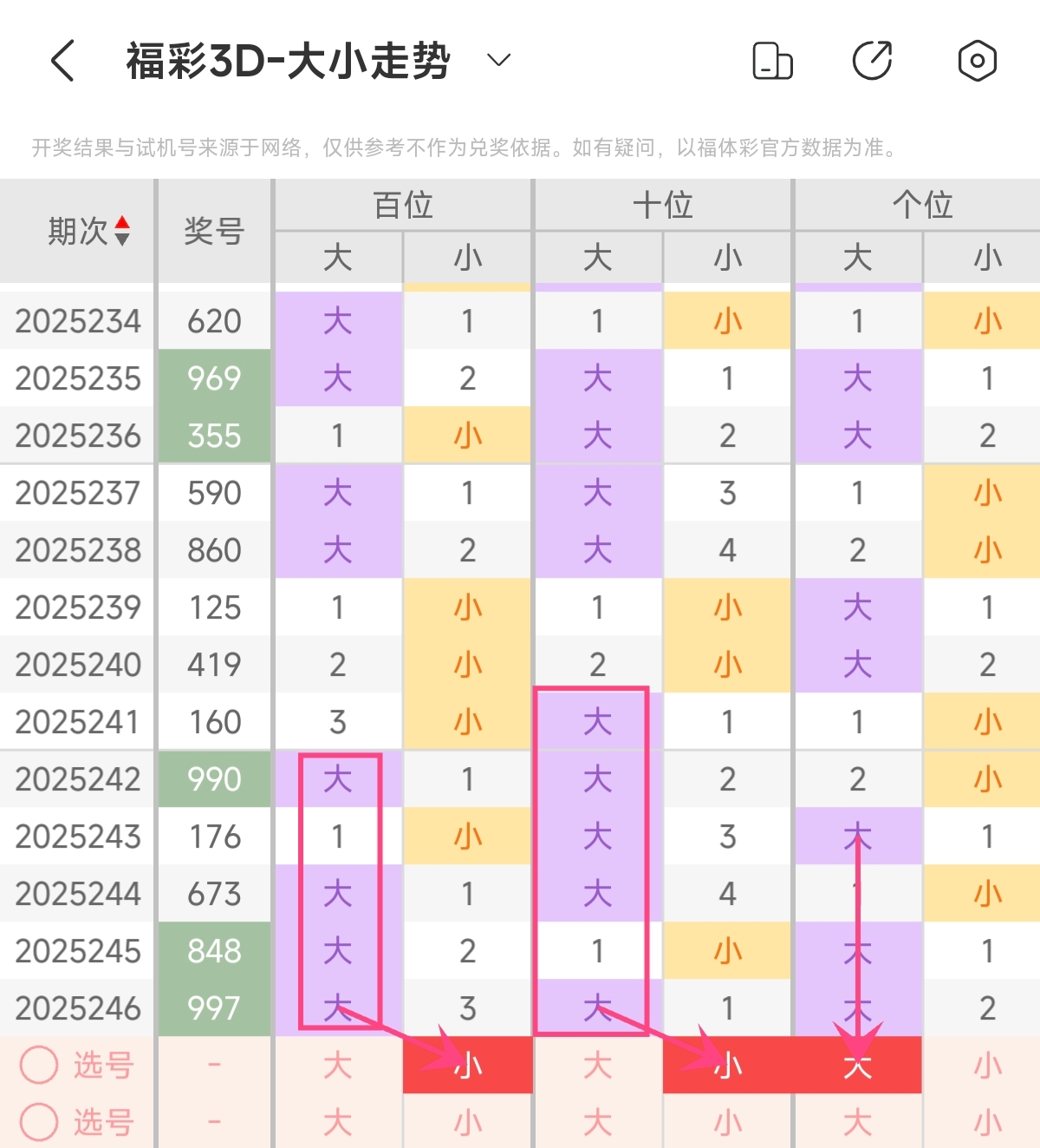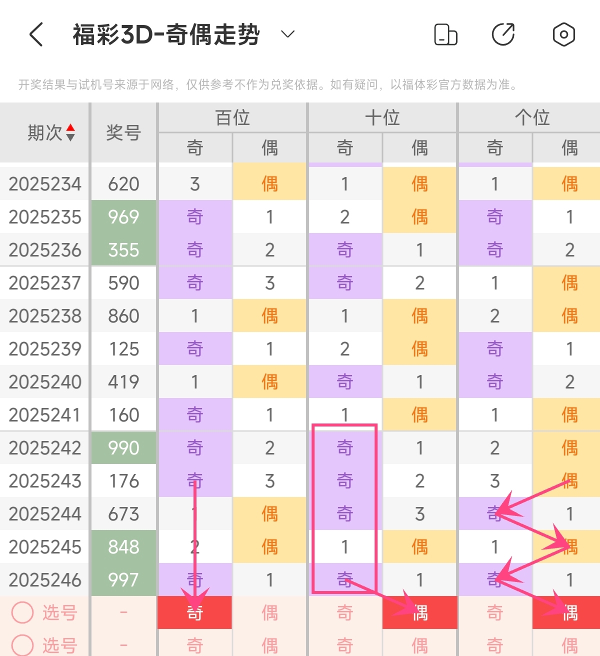 首先让我们回顾一下上期福彩3D第2025246期开奖号码为997,为组三形态,大小比为3:0,奇偶比为3:0,跨度为2,和值为25。