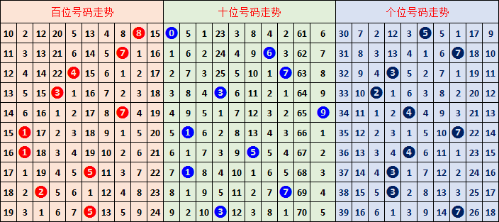 百位号码上期开出奇数号码5,近十期奇偶比7:3,整体来看奇数球出号次数较多,本期预测奇数号码热出,重点关注号码9