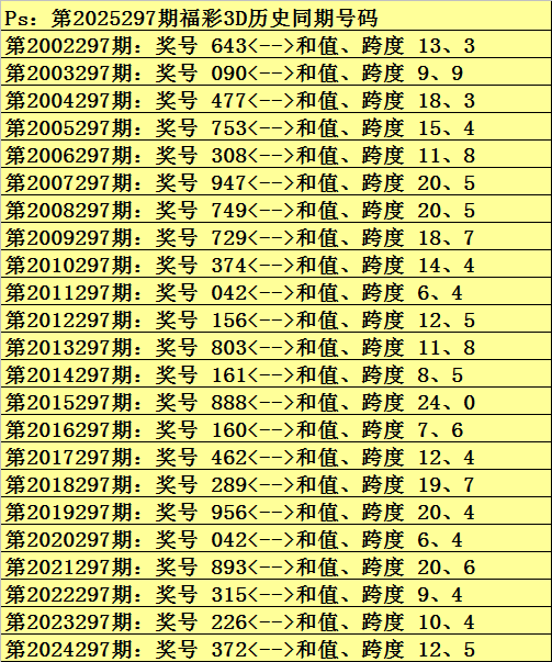 金原第2025297期福彩3D推荐: