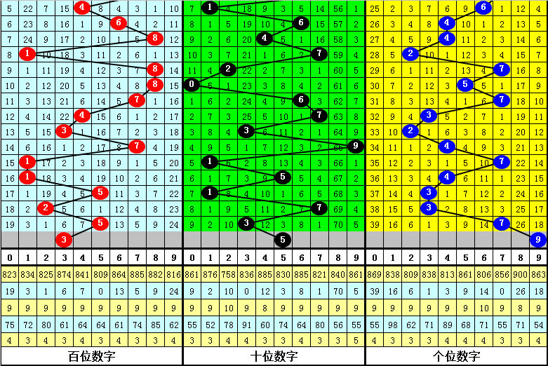百位上期出现:热号5,该位连续十期以热号出现较多,以温号、冷号出现较少,本期该位温号有4个:3、4、6、8,看好温号转热,关注号码3。