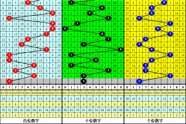 在历史同期号码中,组选0-9号码出现次数为:5出现4次,号码1出现5次,号码0、6、8、9出现7次,号码2、3、4、7出现8次,本期看好两码1、3出现。