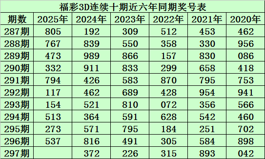 陈青峰福彩3D第2025297期推荐:
