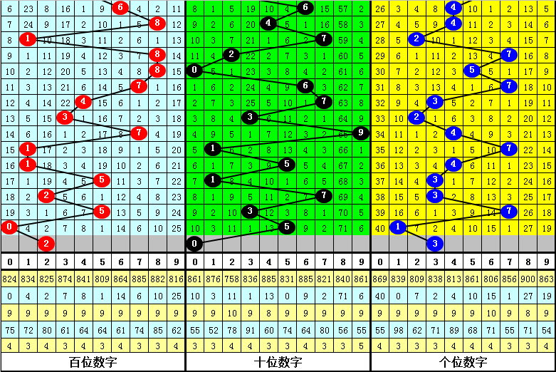 一、在下期开奖中,百位号码大小比为3:4,012路比为2:2:3,奇偶比为2:5,本期百位注意号码:2、8、9,胆码关注偶数:2。