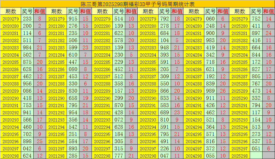 陈三哥3D第2025298期甲子号分析: