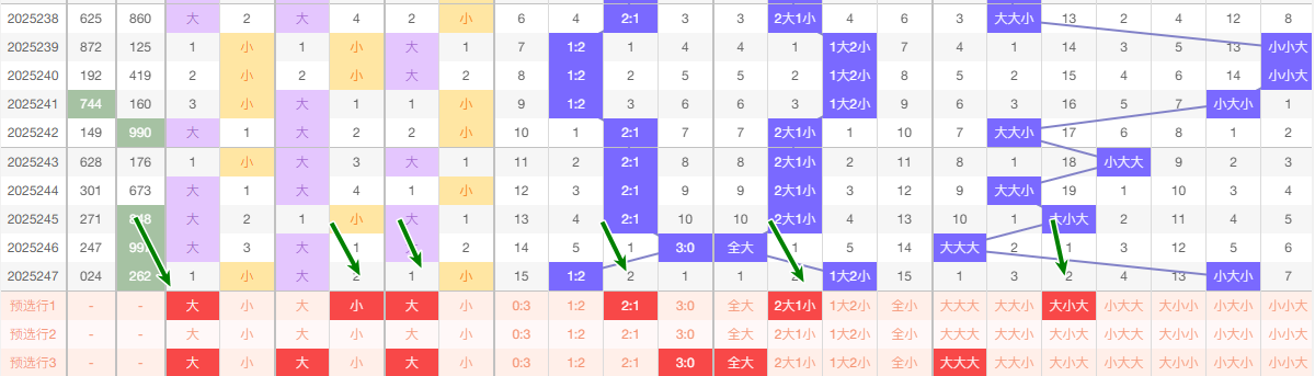 最近的5期当中个位大数出现的频次3次 小数出现2次 ,趋势平和 本期看好继续走大