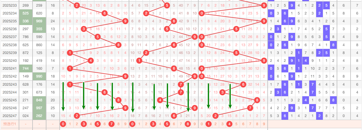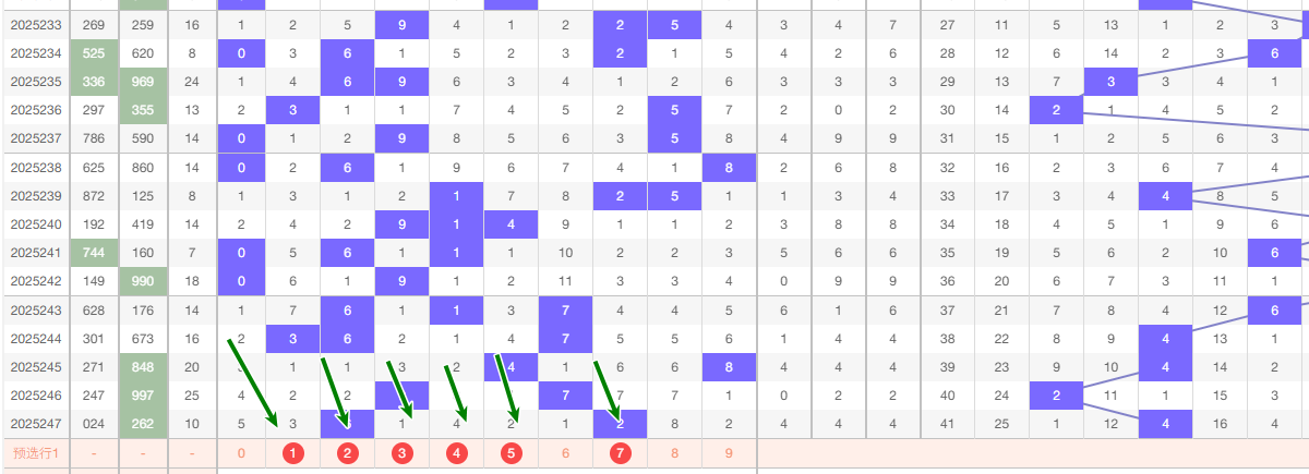 上期个位开出2,本区与上期的跨度为5,本期我们可以从上面走势图中看出选号的思路,本期 个位推荐关注:14579