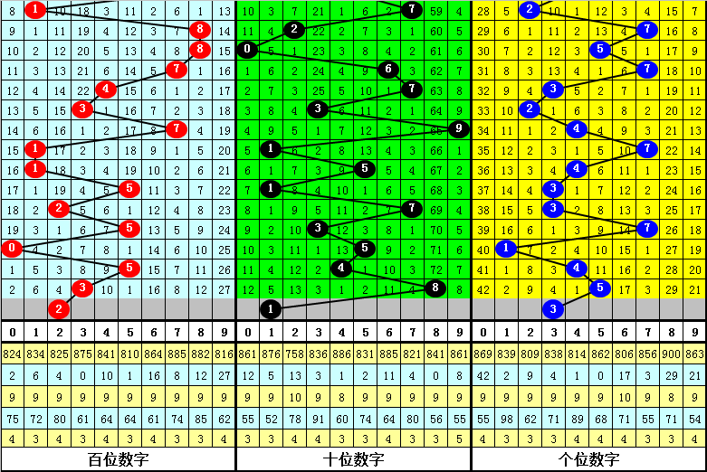 从以上统计可以看出,百十位两码合差1与5同时出现之后其下期两码合差表现最热的4个分别为:0137,本期百十位两码合差可以参考这四码中的数据。