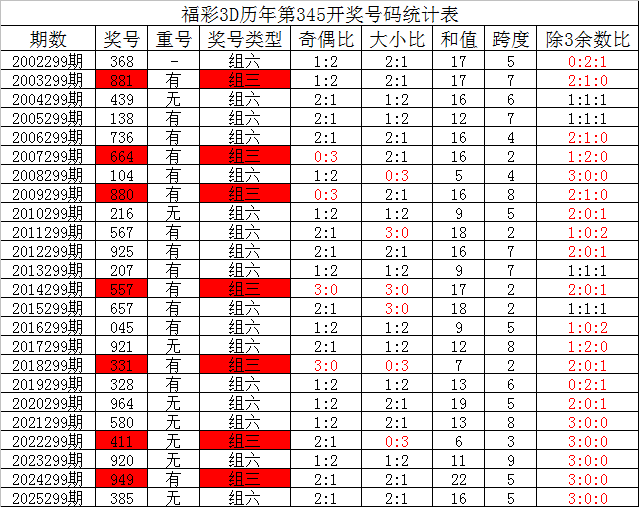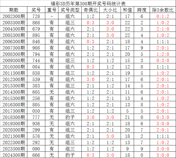 其中,豹子号码出现2次,组三号码开出8次,组六号码出现13次,组六号码目前连续3年没有出现,本期今年同期看好开出组六号码。