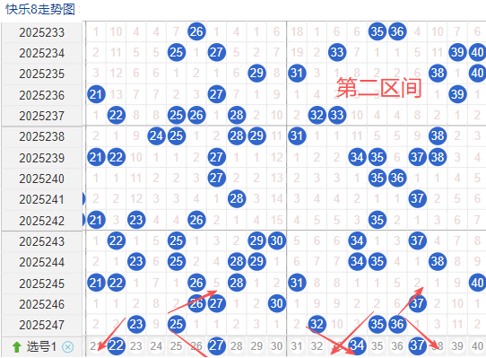 上期二区开出5个奖号(23.25.32.35.36)上期回顾二区开出5个奖号二区间在上期落位同比前期的话呈现了一个递增的落位趋势,先来看本期号码22整体活跃度较温热,在近 30 期里有一定的间歇性出现,不是每期都开,整体走势还是较温热的注意参考。号码27近期热度较热,间隔性整体来说的话还是很稳定,说明其在当前阶段活跃度较热注意防守。号码34近期活跃度较温热,有一定的间歇性近期整体走势相对不是很平稳有特别明显的冷热趋势变化,号码37近30期内活跃度较温热的没有连续出现形态走势,出现的平次不是很稳定.
