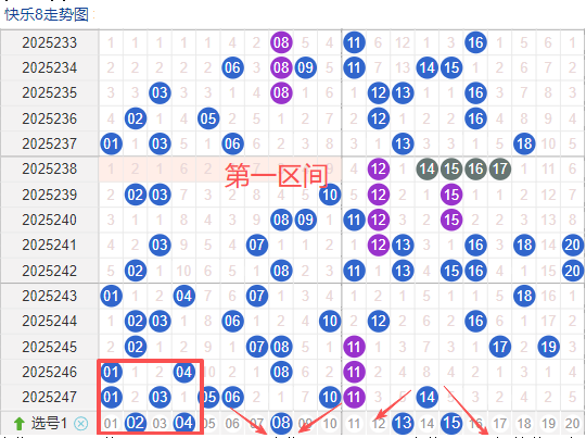 上期一区开7奖号(01.03.05.06.10.11.14)上期回顾一区开7个奖号一区间的奖号在上期呈现了递增的趋势,1字头回补了4个,本期先来看号码02具有一定的间歇性,近期比如有时会间隔 3到5期次出现,整体出现频率还是很稳定的,号码08活跃度近期较热。有一定的间歇性,间隔上来说的话也还是很好,整体走势有一定的波动性,没有明显的冷热趋势变化,出现的频次近期比较热.号码15活跃度相对较热,有明显的连续出现,偶尔间隔多期会出现一次整体表现较热。