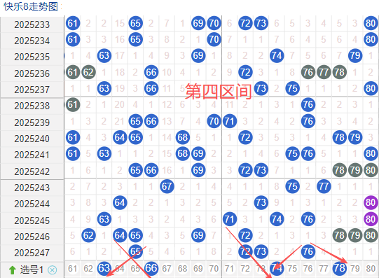 上期四区间开出了4奖号(65.72.73.76)上期的四区开4个奖号呈现了一个走冷的趋势,开出的奖号7头回补了3个号码,6头回补1个,先来看号码66在近 30 期内属于一个热号刚好也是一个联动的落位码这个号码要注意防守,号码63有一定的间歇性活跃度很稳定比如有时会间隔 3到5期就再次出现,近期整体出现频率比较稳定,近期还是要关注的.号码74活跃度近期还是很稳定注意参考的是一个分边号这里可以参考。号码78号近期的热度较好整体还是很稳定注意参考。
