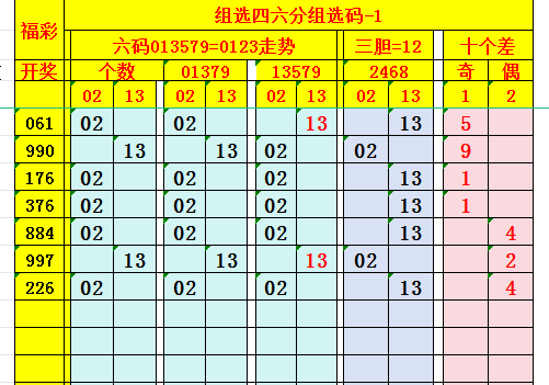 首先是六码分组即{013579}采用0 2 - 13 码出号机制,一是将六码进一步划分为两个基础组,分别为{01357}组、{13579}组,便于后续数据分析与组合研究。