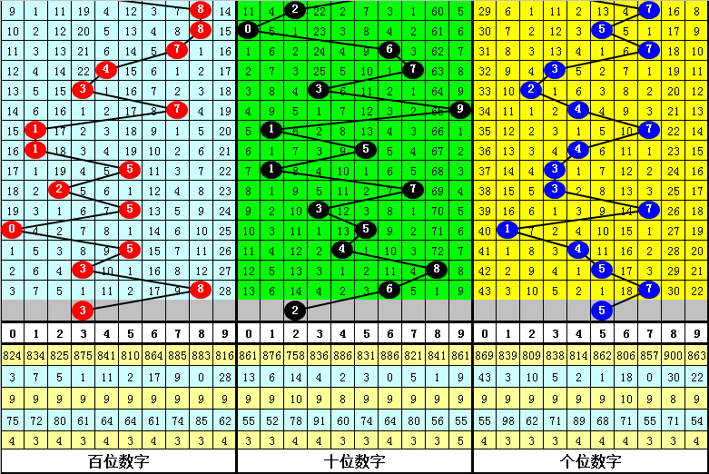 二、福彩3D上期开出奖号867,奖号大小比为3:0,大小类型开出【大大大】,该类型组合奖号在前9次分别开出号码:898-897-969-997-868-967-596-897-767;