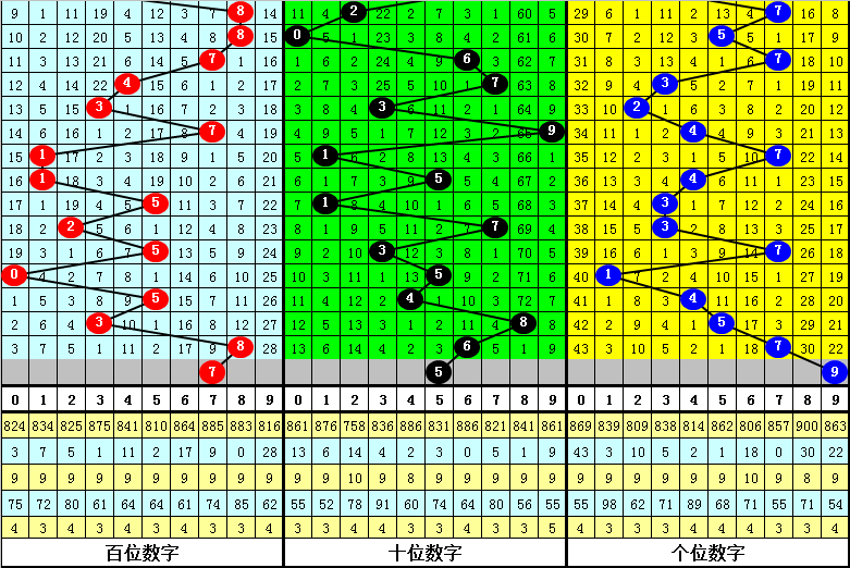 百位推荐:近10期出现2个0路号、3个1路号、5个2路号,2路号大热,0路号走势低迷。本期注意1路号,关注号码4、7。