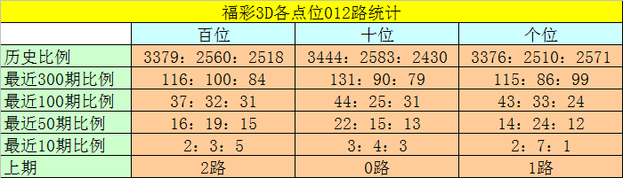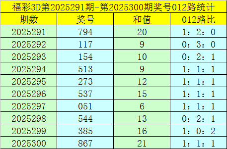 福彩3D第2025301期012路分析