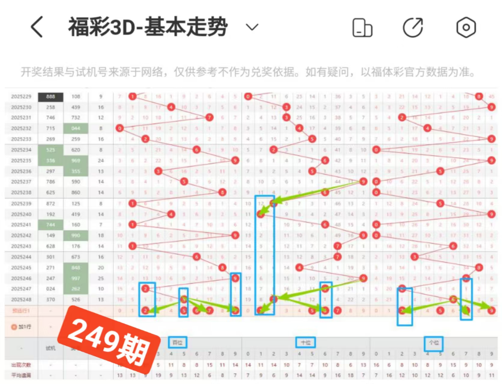 最后就是咱们个位号码,关注2579号的,重点关注下279号码继续走对称下落的走势的,本期可以防下的。