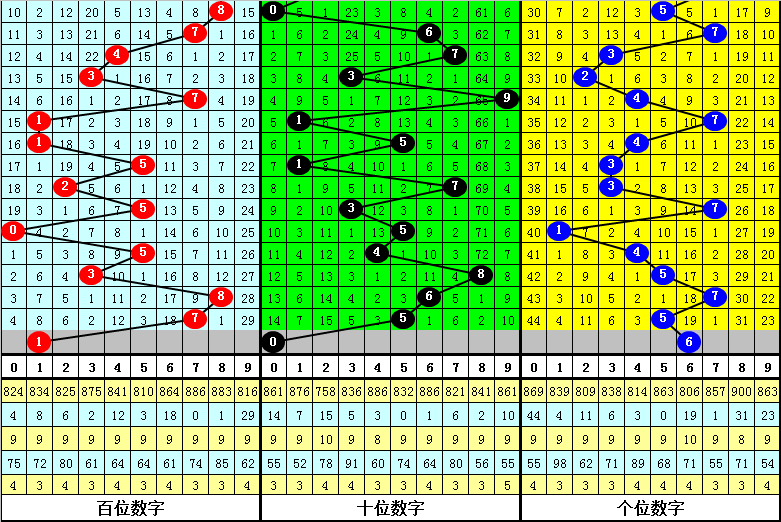 二、百位分析:上期开出号码7,前10次号码7出现之后下期分别开出号码:0495390441,其中号码大小比为3:7,小 号大热;奇偶比为5:5,相等;012路比为5:4:1,1路号码走温。本期参考号码:1。