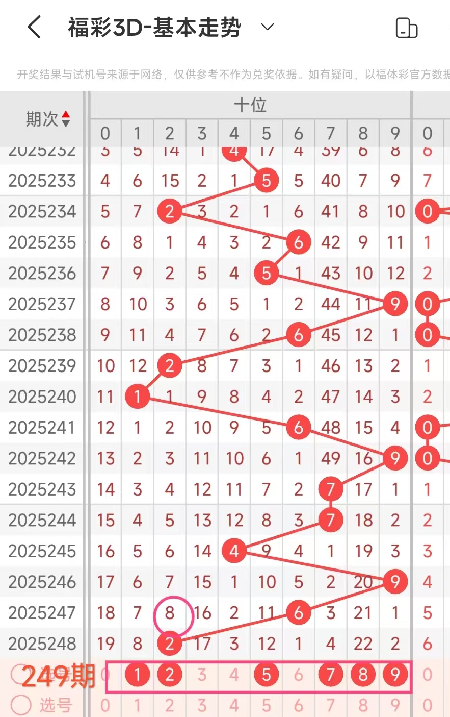 4、通过上述我们得到这期百十个位分析号码:百位89,十1689、个位0236